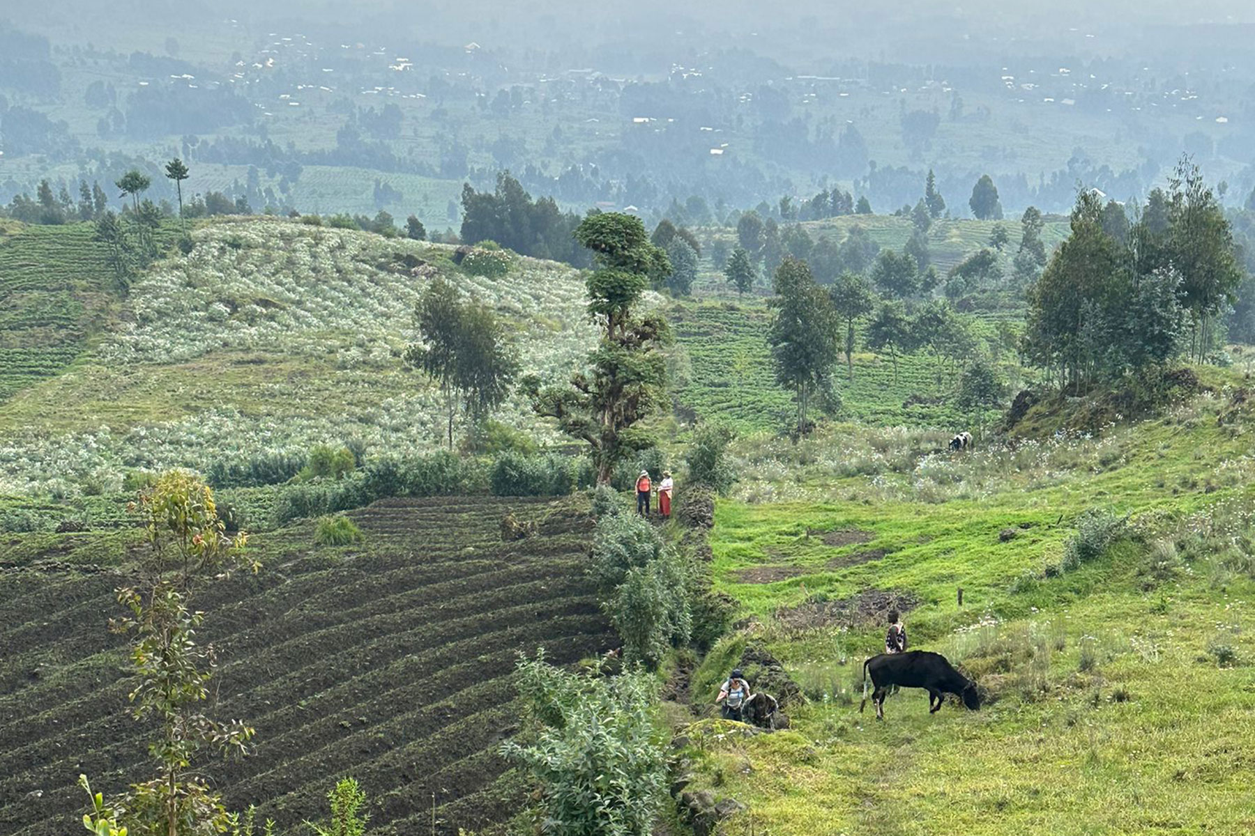 We stay two days in Musanze. On the first day, a group of six people, including myself, hikes to the summit of Mount Bisoke (3711 meters) in the Volcanoes National Park.